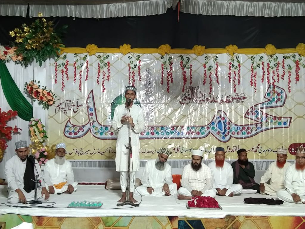 آخر میں درود و سلام پڑھنے کے بعد وطن عزیز میں محبت، ترقی، امن و سلامتی کے لیے دعائیں مانگی گئیں، محفل میں حاجی عبید احمد خان، عبدالمتین فیضی، ناصف احمد، شاداب احمد، مفتیِ شہر اختر حسین منانی، قاری نسیم اللہ، حافظ ریاض احمد، حافظ عماد الدین، حافظ رحمت علی نظامی، نوید عالم، محمّد اعظم، تابش صدیقی، شیراز صدیقی، شہباز وغیرہ نے شرکت کی۔
